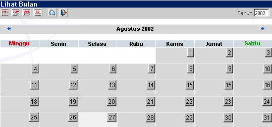 Untuk melihat hari yang spesifik, anda dapat meng-klik nomor-nomor yang berhubungan. Ini akan membawa anda kepada waktu dan kejadian pada hari tersebut. Anda juga akan mengetahui bahwa ada toolbar khusus untuk kalender. Lihat bagian