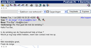 De Berichten Menubalk kan gebruikt worden om het huidig geopende bericht te bewerken.