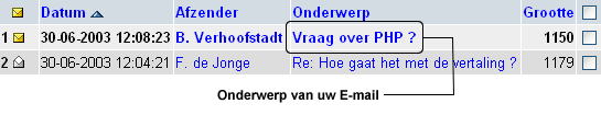 | Om een bericht te lezen, klikt u op het onderwerp van het bericht dat in uw